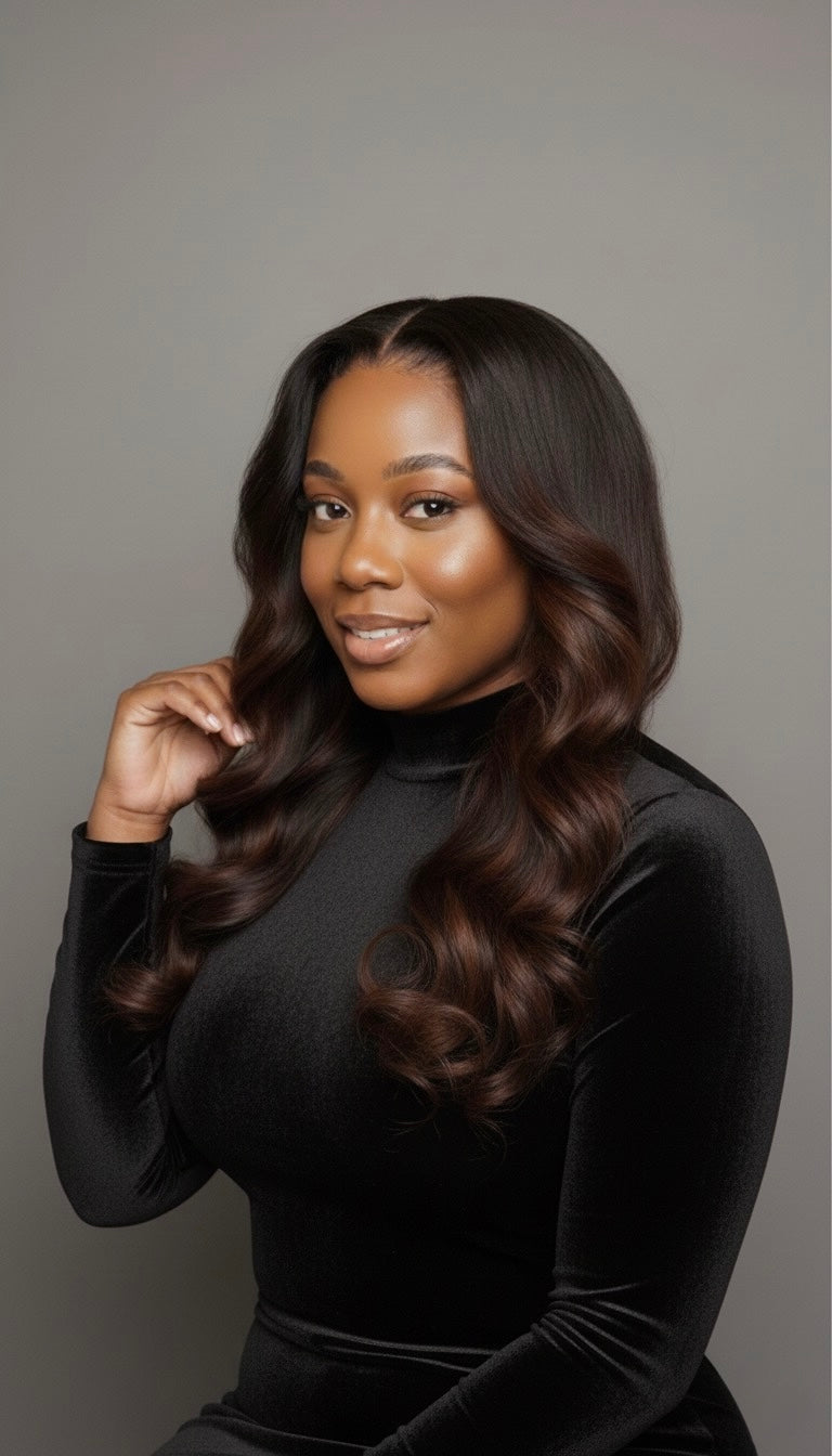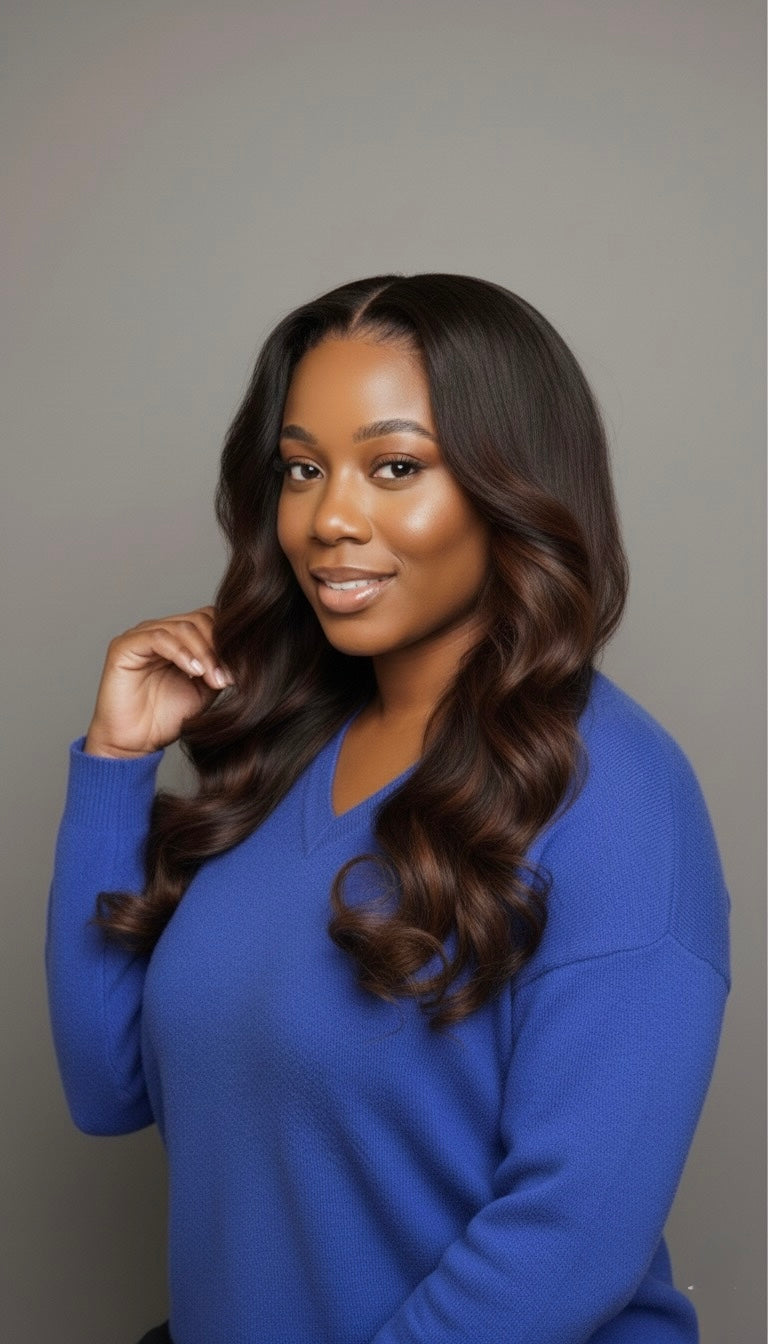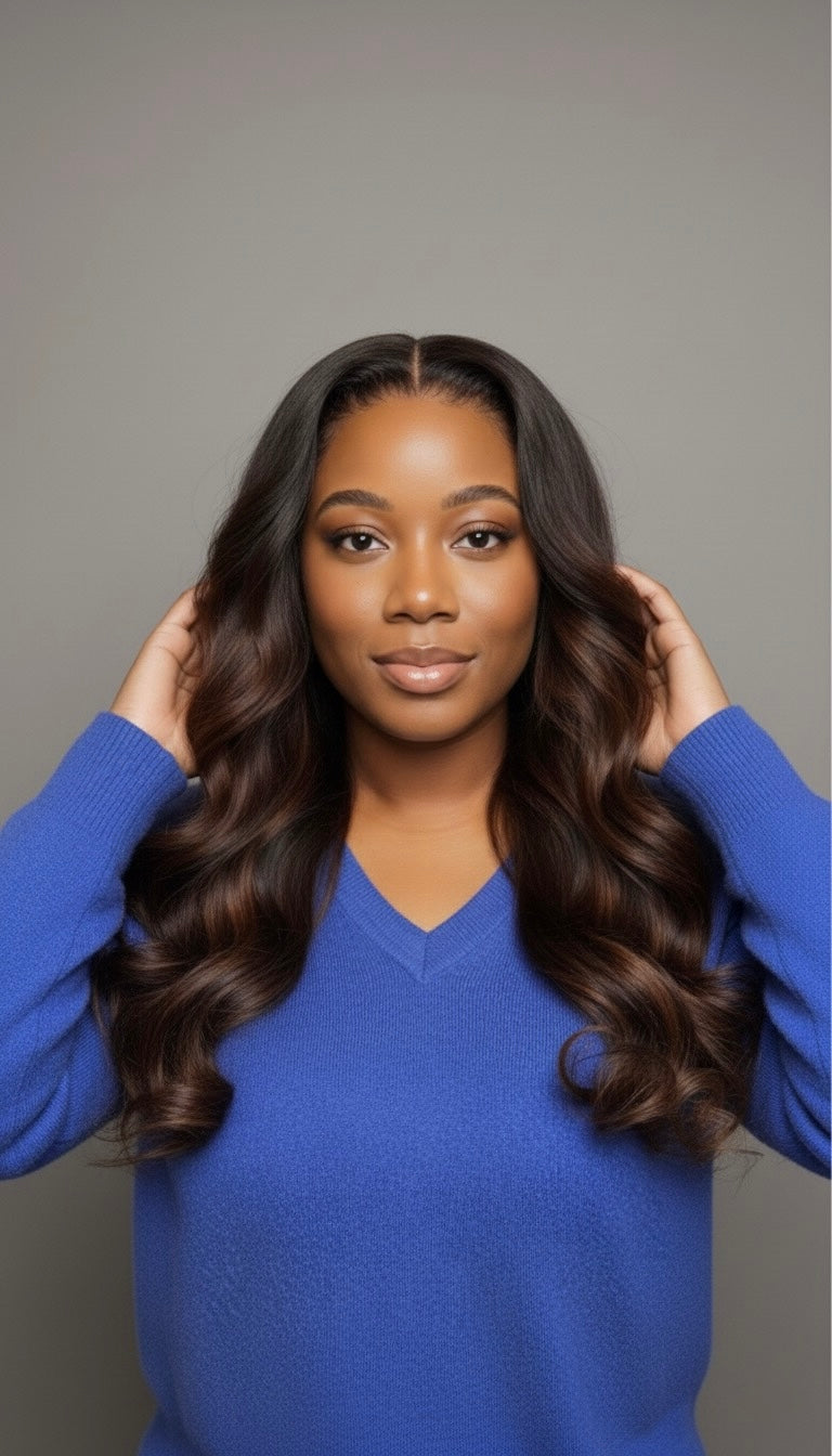 Une perruque glueless ne nécessite pas d'adhésif pour être fixée. Elle est équipée d'une bande élastique ajustable et d'une structure de bonnet sécurisée permettant une installation rapide et facile, sans dommage aux cheveux naturels.